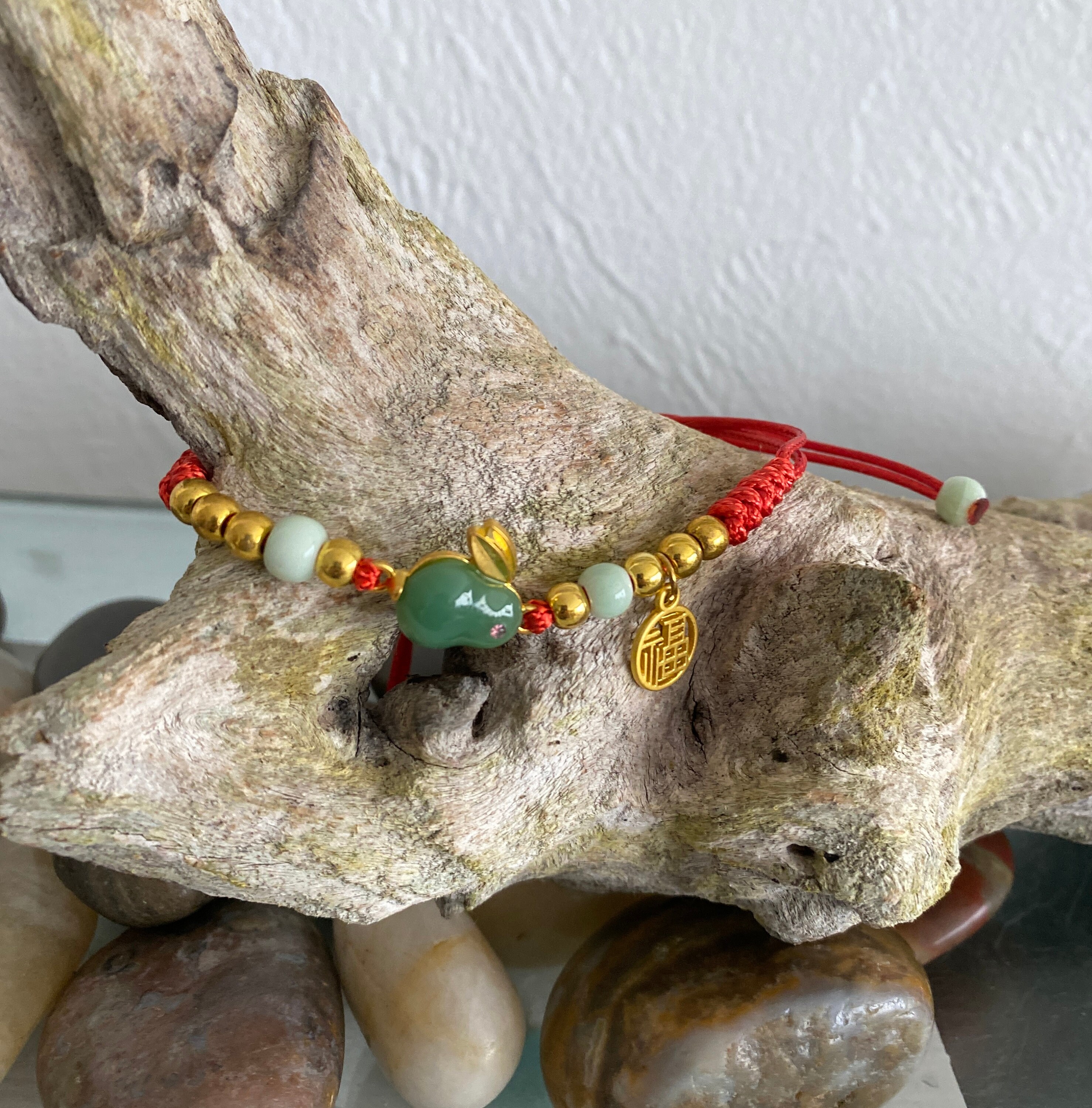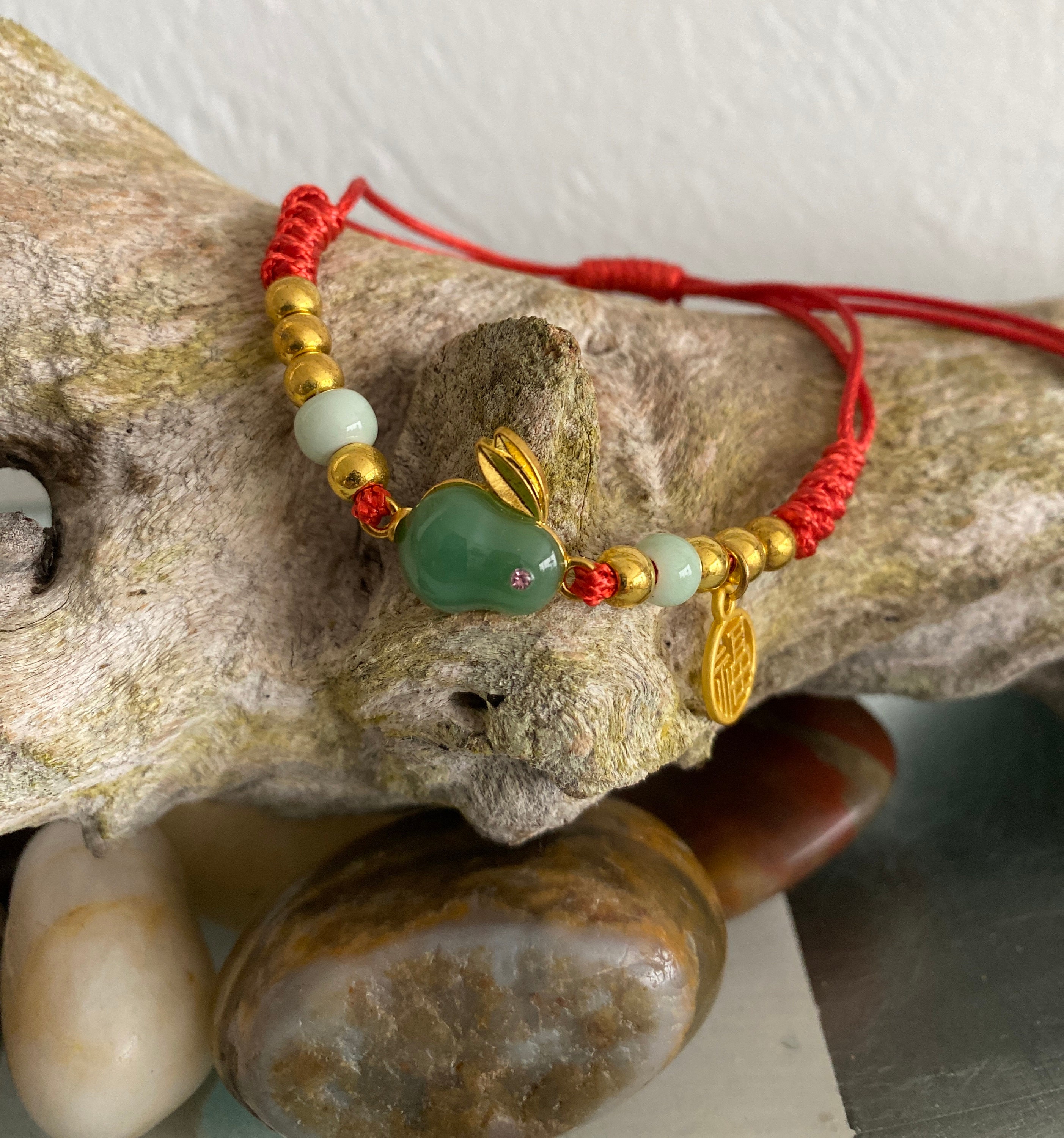 Protection Good Luck Bracelet, White Jade (protection, abundance) Gold Rabbit Charmed Bracelet, Handmade ADJUSTABLE Bracelet